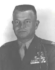 After basic training, he served as a platoon leader at San Diego Marine Corps Base, then served in the South Pacific with the 2nd Marine Brigade during World War II, seeing action in Guadalcanal, Vella Lavella, and Bougainville as a rifle company commander. He was hospitalized briefly from injuries sustained in Bougainville and then joined the 1st Marine Division in time for landings on Peleliu and, later, Okinawa, where he was again wounded in action. He was a lieutenant colonel commanding an infantry battalion training for the invasion of Japan when the war ended.