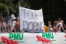 There have been allegations of doping in the Tour de France since the race began in 1903. Early Tour riders consumed alcohol and used ether, among other substances, as a means of dulling the pain of competing in endurance cycling.[1] Riders began using substances as a means of increasing performance rather than dulling the senses, and organizing bodies such as the Tour and the International Cycling Union (UCI), as well as government bodies, enacted policies to combat the practice.