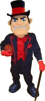 At the December 13, 2008 game versus West Virginia, Duquesne introduced its new human-figure mascot to replace the 7-foot-tall (2.1 m) character mascot. The mascot traditionally sports its black jacket with coat-tails and overbearing top-hat.