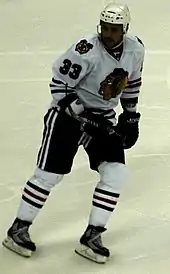 Dustin Byfuglien (/ˈbʌflɪn/ BUF-lin;[1] born March 27, 1985) is an American former professional ice hockey player. He previously played for the Chicago Blackhawks, Atlanta Thrashers and Winnipeg Jets. Drafted as a defenseman, he has played both forward and defense in his career, although he generally played defense in his later seasons. Byfuglien helped Chicago win the Stanley Cup in 2010. Byfuglien is the first black American-born player to win the Stanley Cup.[2]