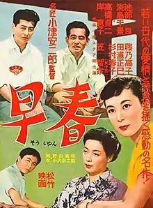 Early Spring (早春, Sōshun) is a 1956 film by Yasujirō Ozu about a married salaryman (Ryō Ikebe) who escapes the monotony of married life and his work at a fire brick manufacturing company by beginning an affair with a fellow office worker (Keiko Kishi). The film also deals with the hardships of the salaryman lifestyle.[1] "I wanted," Ozu said, "to portray what you might call the pathos of the white-collar life."[2]