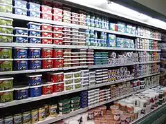Production of pickled cheeses rose from 171,000 tonnes in 1981 to 293,000 tonnes in 2000, almost all consumed locally. Imports of cheese to Egypt peaked at 29,000 tonnes in 1990, but with establishment of modern factories the volume of imports had dropped to under 1,000 tonnes by 2002.[14] Between 1984 and 2007 production of cheese of all types in Egypt rose steadily from about 270,000 tonnes to over 400,000 tonnes.[15] In 1991 roughly half of the cheese was still made using traditional methods in rural areas, and the other half was made using modern processes.[16] The common Domiati cheese was being manufactured by private dairies using small milk batches of 500 kilograms (1,100 lb), and in large government plants in five tonne batches. The government owned Misr Milk and Food Co. had nine plants with an annual capacity of 13,000 to 150,000 tonnes of dairy products.[17]