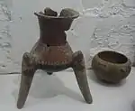 - Grinding stones or metates, three supports, 4 supports, unsupported, curved, table type, flat, with feline heads, etc. (The museum has over 50 of these pieces).