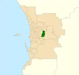 Based in the eastern suburbs of Perth, the district has a north–south elongation covering three separate built up areas. In the north, the district takes in the suburbs of High Wycombe, Maida Vale and a small part of Gooseberry Hill; in the middle it covers most of Forrestfield, Wattle Grove and part of Kewdale; whilst to the south is the suburb of Kenwick plus part of Maddington and Orange Grove.