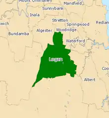 The electoral district of Logan was established under the 1872 Electoral Districts Act which excised the southern part of the Electoral district of East Moreton (the Gold Coast area). Successive redistributions shifted the boundaries northwards towards Brisbane. It was abolished in the 1949 redistribution, being mostly absorbed into the Electoral district of Coorparoo and the Electoral district of Yeronga.[1]