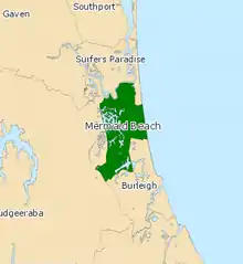 Mermaid Beach is an electoral district of the Legislative Assembly in the Australian state of Queensland. The district is based in the southern part of the Gold Coast.[1]