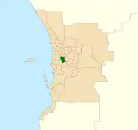 ![]() Location of South Perth (dark green) in the Perth metropolitan area | |