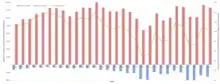 In 2019, France exported a total of 57 TWh of electricity with its neighbouring countries. Since 1990, each year, France roughly exports 10% of its annual production. Its annual exchange sold has always remained positive.[7]