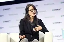 In 2014, she became interim CEO of Reddit.[7] During this period, the site banned revenge porn, with other social media sites following suit. In 2015, decisions made by the company during her tenure, such as the banning of controversial Reddit communities for harassment, generated a wave of controversy that culminated in her stepping down. The backlash she received sparked debates both on the treatment of women in technology and the need for transparency in a company that relies on volunteers.[8][9][10]