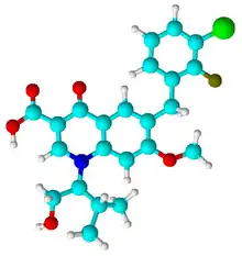 Elvitegravir (EVG) is an integrase inhibitor used to treat HIV infection. It was developed[1] by the pharmaceutical company Gilead Sciences, which licensed EVG from Japan Tobacco in March 2008.[2][3][4] The drug gained approval by the U.S. Food and Drug Administration on August 27, 2012 for use in adult patients starting HIV treatment for the first time as part of the fixed dose combination known as Stribild.[5] On September 24, 2014 the FDA approved Elvitegravir as a single pill formulation under the trade name Vitekta.[6] On November 5, 2015 the FDA approved the drug for use in patients affected with HIV-1 as a part of a second fixed dose combination pill known as Genvoya.[7]