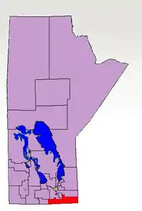 It was located in the southeastern corner of the province. It is bordered to the north by Carman, Morris, Steinbach and La Verendrye, to the west by Pembina, to the east by the province of Ontario and to the south by the American state of North Dakota. The riding included the communities/municipalities of Emerson, Altona, Dominion City, Rhineland, Gretna, Woodridge and St. Jean Baptiste.[1]