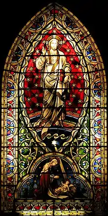 The first of the windows was ordered from London and installed in May 1882.[4][7] The windows are subject to a preservation order. The window above the altar (the "East" window) was originally illuminated by natural light, but the construction of the Parish House required it to be lit from behind with artificial light. It is exceptional in that it depicts both Christ in Glory and Jesus as a baby; a window in Genoa is the only other known in Europe.