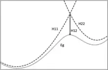 Where H11 and H22 are the valence bond descriptions of the reactant and product state respectively. And H12 is the coupling parameter. The H11 and H22 potentials are usually modeled using force field descriptions Ureactants and Uproducts . H12 is a bit trickier as it needs to be parameterized using a reference reaction. This reference reaction can be experimental, typically from a reaction in water or other solvents. Alternatively quantum chemical calculations can be used for calibration.