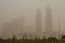The reason for this development is given by rising temperature which causes less precipitation. The consequence is dehydration of already dry landscape. UAE's climate condition of hot temperature and semi-arid landscape affects also the reaction between industrial pollution and airborne dust different than other places in the world.[16] This reaction might support the correlation between the pollution caused by human consumption and the increasing airborne dust frequency.
