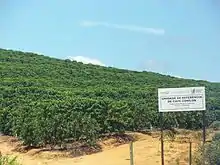 Espírito Santo was the seventh-largest national producer of bananas in 2018, with 408 thousand tons. Brazil was already the second-largest producer of the fruit in the world, currently in third place, losing only to India and Ecuador, and produced 6.7 million tons in the same year.[17][18] Espírito Santo was the largest Brazilian producer of papaya in 2018, with 354 thousand tons. Brazil produced 1.06 million tons in the same year.[19] The state was the fifth-largest producer of coconuts in Brazil in 2009, with 157 million fruits.[20] In 2018, the state also produced cassava, in a small amount compared to Brazilian production: 115 thousand tons, with the country producing 17 million tons.[21] Espírito Santo had an orange production of around 18 thousand tons in 2018, the country's 14th-largest producer state.[22]