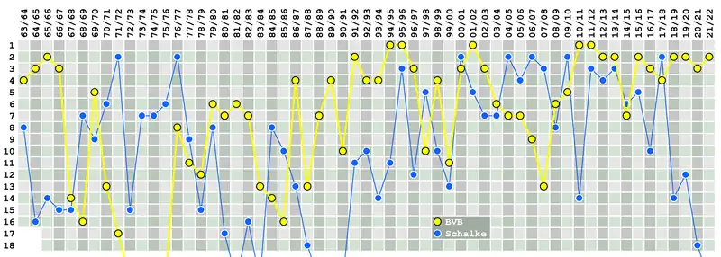 Their first years in the Bundesliga were difficult. In 1964–65, they escaped relegation only through the expansion of the league to 18 teams. A number of finishes at the lower end of the league table followed, before a marked improvement in 1971–72, culminating in a second-place finish to Bayern Munich and after having led the league for much of the season. In the same season, Schalke won the DFB-Pokal for the second time in its history.
