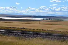 Even though the federal government had opened this area of Montana to homesteading in 1862, not until 1909 did settlers really come into the Fairfield area when Congress liberalized this act allowing the settler 320 acres of free land instead of 160. It became apparent, however, that the small homesteads, 160 or 320 acres, made little sense in the vast and dry landscape of Montana. After the Bureau of Reclamation conducted a survey that showed a dam could be built in the Sun River Canyon and water for irrigation in Fairfield area would be feasible were many more settlers attracted to Fairfield. The Gibson Dam was completed in 1929.[3] Today, Greenfield Irrigation District delivers water from Gibson Dam to approximately 83,000 acres surrounding this community.