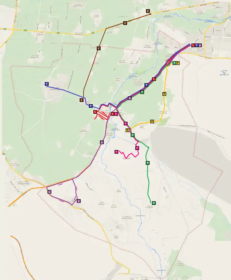 | 2 | Qahderijan-Isfahan | 20 | 7 | 30 | 37 | Isfahan Bus BRT-1, 33, 39, 46, 66, 104 |