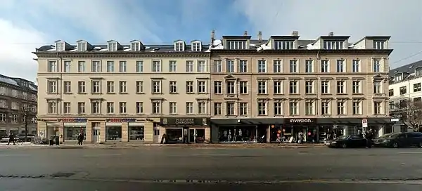 The east side of the street was dominated by factories and small workshops: The Ruben Textile Factories opened in 1859 on the corner with Rolighedsvej, employing more than 500 workers by 1890. Frederiksberg Iron Foundry existed from 1872 to the mid-1950s. Further north, also on the east side between Rolighedsvej and Ladegården, was a beer garden and entertainment venue, founded in about 1850, which survived until 1907.[1]