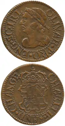 Under the Commonwealth of England no farthings were issued by the government, although pattern farthings were produced. Huge quantities of private tokens were issued in this period by small traders or towns to satisfy demand.