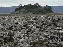 On October 21, 2003, a peak flow of 135,000 cubic feet (3,800 m3) per second occurred when the Skagit River crested at more than 14 feet (4 m) above flood stage. A total of 3,400 people were evacuated from flood prone areas along the river. On November 8, 2006, in the aftermath of a strong Pineapple Express storm, a flow of 125,000 cubic feet (3,500 m3) per second and a crest 8.2 feet (2.5 m) feet above flood stage were recorded.[9] Such floods deposit great quantities of driftwood along river channels and on tidelands.[1]
