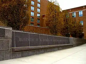 The Max M. Fisher College of Business is the business school of The Ohio State University, a public research university in Columbus, Ohio. Fisher's campus is located on the northern part of the university within a partially enclosed business campus adjacent to St. John Arena. It is composed of brick buildings loosely arranged in a quadrangle. The 370,000-square-foot (34,000 m2) complex is the largest multi-building project ever undertaken by the university.[3] Fisher is one of the founding members of the AACSB.