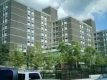 The campus has six residence halls, three of which have rooms in suites, two are designated as apartment-style living, and one has a normal dormitory layout.[14][15]