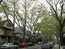 As six-story Art Deco and Colonial Revival apartment houses (alongside analogous yet more affordable four-story walk-up buildings) were developed on Ocean Avenue and throughout its periphery,[25] Flatbush nurtured a socioeconomically diverse population of Irish Americans, Italian Americans and American Jews; according to anthropologist Ansley Hamid, occupants ranged from "merchants [and] professionals" to "skilled [and] manual laborers."[26]: 128 Although the Victorian Flatbush neighborhood associations endured and grew to encompass succeeding waves of new residents, urbanization and the increasing prevalence of automobiles compelled the remaining vestiges of the neighborhood's "Anglo-Dutch elite" to "[flee] in droves for the upscale suburbs of Westchester, Long Island and New Jersey" by the late 1920s.[27]