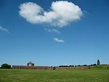 The only structure on the historic site that dates back to the original fort is the stone gunpowder magazine, with the majority of the buildings on the site dating back to the fort's reconstruction in the 1930s.[31] All the historic reconstructed structures are considered "level 2 cultural resources," as they provide the fort's "historical character," a learning resource for the development of historical sites through make-work programs during the Great Depression, and illustrate the methods used by historic preservation movement in the 1930s.[8][32]