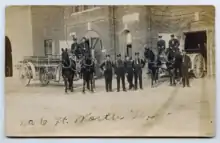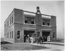 On April 3, 1909, the Fort Worth Fire Department responded to a fire on the city's south side. Aided by a 40 mph wind, the fire quickly grew and a general alarm was soon sounded. Two of the department's engines crashed while en route to the fire. Engine Company #8 crashed into a telephone pole and Hose Company #5 was also put out of action when one of its horses slipped and broke a leg. The fire grew so hot that the rubber hoses the department was using melted.[5] The fire burned out of control until it came to the natural barrier created by the Texas and Pacific Railroad's locomotive roundhouse, shops, and yard. This barrier prevented the fire from spreading further north, thus sparing the downtown area. When the fire was finally put out, more than 26 square blocks and 290 structures, including the Texas and Pacific station, were destroyed.[6]