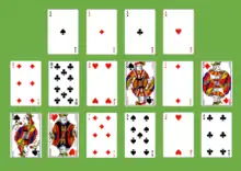 Fortune's Favor or Fortune's Favour is a patience or card solitaire which is played with a deck of 52 playing cards.[2] It is so-called probably because the chances of winning are completely on the player's side. It is a significantly simplified version of the game Busy Aces, a member of the Forty Thieves family of solitaire games.