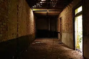 Today the platform remains along with two structures (see the picture of this article). The main building is very overgrown but you walk along the tree covered platform and enter via the middle door. Inside are some faded signs on the door and some men's urinals at the far end. The whole area is very overgrown but you can still see the station very clearly.