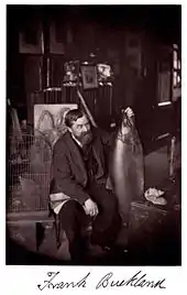 Frank was the first son of Canon William Buckland, a noted geologist and palaeontologist, and Mary, a fossil collector, palaeontologist and illustrator. Frank was born and brought up in Oxford, where his father was a Canon of Christ Church. His godfather was the sculptor Sir Francis Chantrey. Educated at home by his mother, he went, at eight and a half, to a boarding school in Cotterstock, Northamptonshire staying with his uncle John Buckland. From 1837–39, he went to a preparatory school in Laleham, Surrey, run by his uncle, John Buckland,[1] a brutal headmaster who flogged his pupils quite excessively.[2] Relief came with a scholarship to Winchester College, a school with an unbroken history of six hundred years. Here he was taught by the Second Master, Charles Wordsworth, who sent letters of praise to his father. Winchester had a harsh regime, but was much preferable to his previous school. While at Winchester he continued to take an interest in animals, trapping rats and mice, dissecting and sometimes eating them.[3] Students complained of a foul smell emanating from the remains of a cat under his bed. Towards the end of his schooling, he was dissecting human parts that he obtained from the hospital on the sly. He was known for his exploits with a lancet. One student with a dolichocephalous head heard Frank muttering "what wouldn't I give for that fellow's skull!"[4] He was not a first-rate scholar, but managed to gain entrance to Christ Church, Oxford in October 1844,[5] after failing to get a scholarship to the smaller Corpus Christi.[6] He joined a debating club and the first essay he read was on "whether Rooks are beneficial to the farmer or not".[7] He became a friend of the curator at Surrey Zoo and when he heard that a panther had died, he had it dug up and declared that the meat "was not very good".[8] When the British Association met in 1847 at Oxford, Frank took along his pet bear Tigleth Pileser dressed in student attire of a cap and gown to the party. Charles Lyell wrote that Buckland introduced the bear formally to him and other zoologists present. This was not to go on for long as the Dean finally informed him that "either you or your bear must go".[9] In 1845 Frank went to Giessen for three months to study chemistry under Justus von Liebig.[10] In September 1846 he made a trip around Switzerland.[11] Frank also attended some of the lectures of his father.[12]
