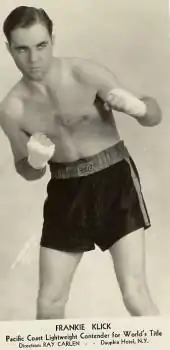 Frankie Klick (May 5, 1907 – May 18, 1982) was an American boxer who became a World Jr. Lightweight boxing champion when he defeated Kid Chocolate, on December 25, 1933 at the arena in Philadelphia, Pennsylvania, in a seventh-round technical knockout. In his career he fought the exceptional champions Henry Armstrong once, Barney Ross twice and Tony Canzoneri four times.[1] His managers were Joe Doran and Ray Carlin.[2]