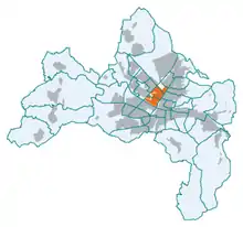 Stühlinger is a district to the west of the historic city center of Freiburg im Breisgau. In December 2013, 18,300 residents lived in the neighborhood. There are three boroughs: Stühlinger-Beurbarung, Stühlinger-Eschholz and Alt-Stühlinger. Although historically correct, the railroad Freiburg-Colmar is the north end of the Stühlinger and therefore Stühlinger-Beurbarung is not part of the district anymore. The district borders the area of the central train station of the Deutsche Bahn AG to the east, the river Dreisam to the south, tracks of the railroad freight transportation to the west and the district Brühl to the north.