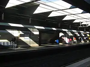 Garbatella is a station on the Line B of the Rome Metro. It was opened in 1990 and is located behind the former Mercati Generali di Roma, on the via Ostiense in the Ostiense quarter.[1] It replaces the old Garbatella station 200m away, whose entrance was on Piazza Giancarlo Vallauri (the present one is accessed from Via Giacinto Pullino).