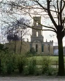 The Garrison Church (German: Garnisonkirche) was a Protestant church in the historic centre of Potsdam. Built by order of King Frederick William I of Prussia according to plans by Philipp Gerlach from 1730 to 1735, it was considered as a major work of Prussian Baroque architecture. With a height of almost 90 metres (295 feet), it was Potsdam's tallest building and shaped its cityscape. In addition, the Garrison Church was part of the city's famous "Three Churches View" together with St. Nicholas Church and Holy Spirit Church. After it was damaged during the British bombing in World War II, the East German authorities demolished the church in 1968. After the German reunification the Garrison Church is currently being rebuilt as a centre for remembrance and reconciliation.