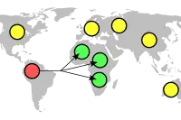 Geocast refers to the delivery of information to a subset of destinations in a wireless peer-to-peer network identified by their geographical locations. It is used by some mobile ad hoc network routing protocols, but not applicable to Internet routing.