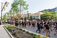 The protesters in downtown Columbus and other central parts of the city are diverse, as people of all races are encouraged to attend. The makeup was reportedly significantly more diverse than 2016 protests' crowds, which were predominantly attended by black residents.[57] By June 13, most of the protesters downtown have been predominantly white, and in majority-white suburbs, some white people have led events. The multiracial makeup of the crowds is largely supported and encouraged by Columbus protest groups.[83]