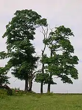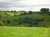 This small settlement is shown on General Roy's survey of 1747 - 55, under the name of 'Greenhill' in the singular and has two buildings indicated where the old school was situated. The school opened in the 1890s at the time that Hessilhead school closed. Greenhills closed circa 1958 and was demolished in the mid-1980s; having been used for some years as a glue factory by Strathbond Ltd who still trade from the Willowyard Estate, Beith. Mr McGregor was the last headteacher and the sports field had been the field lying across the Barrmill to Burnhouse Road.[39] A smithy stood at the crossroads on the Borestone farm side of the hamlet. This hamlet is named after the artificial mound, a Moot, Law or Justice hill that once stood here.