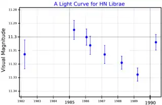 Gliese 555 (HN Librae) is a red dwarf star of spectral type M4.0V, located in constellation Libra at 20.2 light-years from Earth.[14]