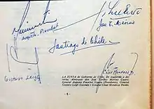 The Government Junta of Chile (Spanish: Junta Militar de Gobierno) was the military junta established to rule Chile during the military dictatorship that followed the overthrow of President Salvador Allende in the 1973 Chilean coup d'état.[1][2] The Government Junta was the executive and legislative branch of government until December 17, 1974, when Augusto Pinochet rose was formally declared President of Chile in late 1974.[3] After that date, it functioned strictly as a legislative body until the return to democracy in 1990.