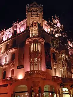 The Gran Hotel is a former historic hotel in Palma de Mallorca, in Spain. It is part of the historic centre of the city.[1] The hotel was designed by Lluís Domènech i Montaner and completed in 1903. Today the building has been converted into a cultural center, home to the Fundación la Caixa. It contains a permanent exhibition of paintings by Anglada Camarasa. The building is one of the most important examples of Modernisme on the island, with a facade lavishly decorated with sculptures and ceramics.