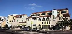 Granada Shoppes and Studios, also known as the Granada Buildings, is an imaginative, Mediterranean Revival and Spanish Colonial Revival style block-long complex consisting of four courtyard-connected structures, in Central Los Angeles, California. It was built immediately to the southeast of Lafayette Park in the Westlake District, in 1927.