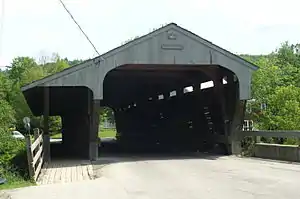 The Great Eddy Covered Bridge, also called the Big Eddy Covered Bridge or Waitsfield Covered Bridge,[2] is a wooden covered bridge that crosses the Mad River in Waitsfield, Vermont on Bridge Street. Built in 1833, it is one of Vermont's oldest covered bridges. It was listed on the National Register of Historic Places in 1974.[1]
