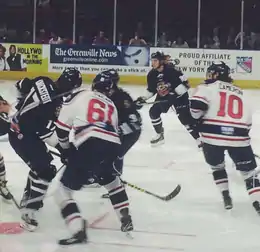 The Greenville Swamp Rabbits are a professional ice hockey team located in Greenville, South Carolina. They play in the South Division of the ECHL's Eastern Conference and play their home games at the Bon Secours Wellness Arena in downtown Greenville.[2] The franchise had previously played as the Johnstown Chiefs from the ECHL's inception in 1988 until the team's relocation in 2010 and subsequently as the Greenville Road Warriors until being re-branded as the Swamp Rabbits in 2015. The Swamp Rabbits are the second ECHL franchise to play in Greenville, as the city hosted the Greenville Grrrowl from 1998 until 2006.[3]