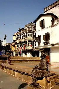 During British Raj, British officials invited foreign operas and theatre groups to entertain them, this in turn inspired local Parsis to start their own travelling theatre groups, largely performed in Gujarati.[2] The first play published in Gujarati was Laxmi Natak by Dalpatram in 1850, it was inspired by ancient Greek comedy Plutus by Aristophanes.[3]