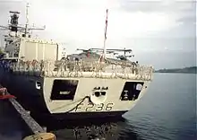 Deployments in the 1990s include her first trip to the South Atlantic, as Falkland Islands guardship, which ended in October 1996. Her first visit to the City of Dundee was in 1993. Several NATO deployments followed.