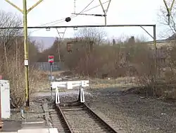 The line between Manchester and Sheffield Victoria was electrified in the early 1950s, including some of the branches; the full electric service between Manchester and Penistone began on 14 June 1954, and this included the local service between Manchester, Glossop and Hadfield.[4] For the local services, eight three-car electric multiple-units (later known as Class 506) were provided; these had been built in 1950 but stored until required in 1954.[5] Through trains to Sheffield were hauled by electric locomotives of Class EM1 and Class EM2.[6] Passenger services east of Hadfield ceased in January 1970, and the line between Hadfield and Penistone was closed completely in July 1981.[7]