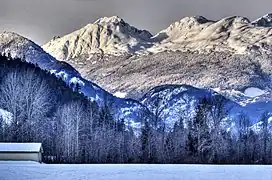 Handcar Peak is a 2,338-metre (7,671-foot) mountain summit located in the Railroad Group of the Coast Mountains, in the Pemberton Valley of southwestern British Columbia, Canada. It is situated 38 km (24 mi) northwest of Pemberton and 3 km (2 mi) west of Locomotive Mountain. Precipitation runoff from the peak drains into Sampson Creek and Buck Creek which are both tributaries of the Lillooet River. Handcar Peak is more notable for its steep rise above local terrain than for its absolute elevation as topographic relief is significant with the summit rising over 2,050 meters (6,725 ft) above Lillooet River and Pemberton Valley in approximately 4 km (2.5 mi). The mountain's name was proposed in 1978 by mountaineer Karl Ricker of the Alpine Club of Canada, in association with Railroad Pass, Railroad Creek and other railroad-related names of the immediate vicinity.[3] The toponym was officially adopted January 23, 1979, by the Geographical Names Board of Canada.[2]